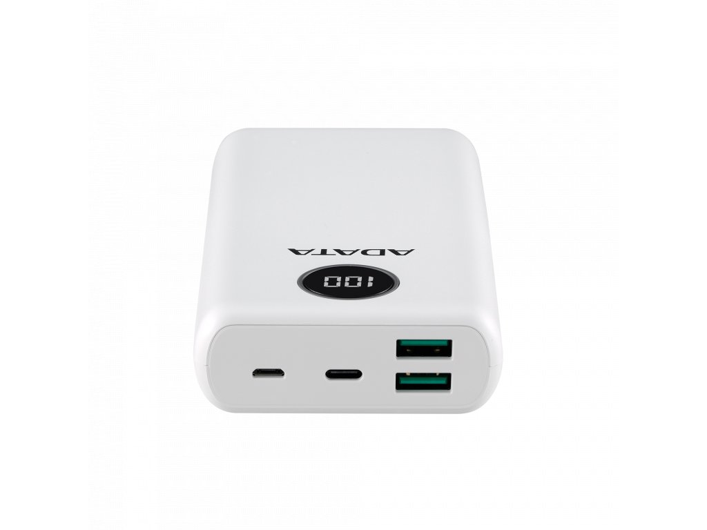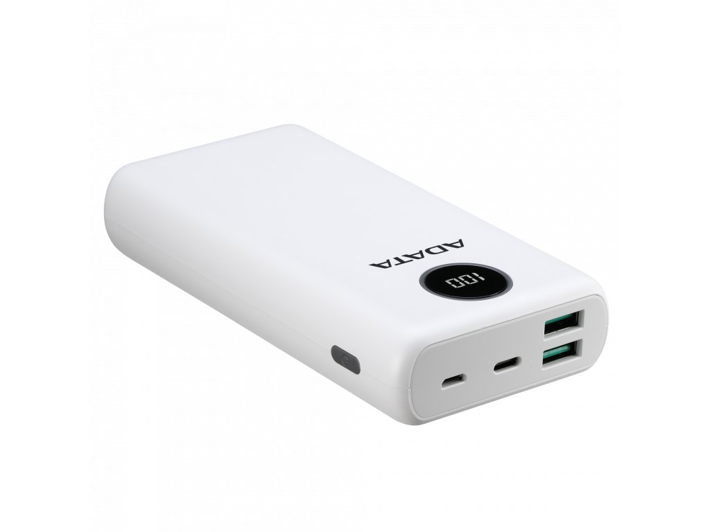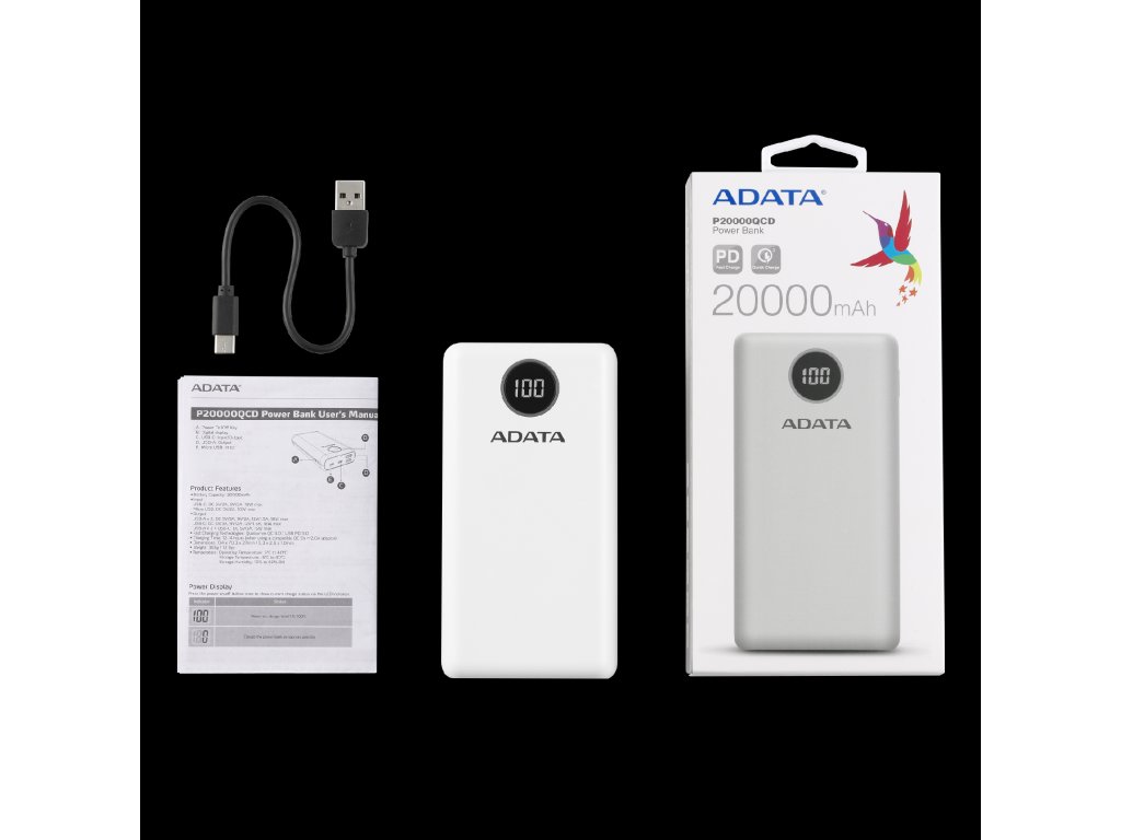 ADATA P20000QCD Power Bank 20000mAh weiß Mit der ADATA P20000QCD Powerbank sind Sie überall mit Strom versorgt. Dieses tragbare Ladegerät mit hoher Kapazität kombiniert eine kompakte Form mit der Unterstützung moderner Schnellladestandards, damit Ihre Geräte auch unterwegs immer einsatzbereit sind. Funktionen: – Unterstützt zwei gängige Schnellladetechnologien (Qualcomm QC 3.0 und USB Power Delivery 3.0), sodass Ihre kompatiblen Geräte schnell aufgeladen werden können. - Dank bidirektionalem USB-C-Laden kann derselbe Anschluss zum Laden der Powerbank und zum Laden Ihrer Geräte verwendet werden. - Drei Schnelllade-USB-Anschlüsse ermöglichen das gleichzeitige Laden mehrerer Geräte. - Mehrstufiger Schaltkreisschutz (Überstrom, Überspannung, Übertemperatur, Kurzschluss, Überentladung) sorgt für einen sichereren Betrieb. Technische Daten: Kapazität: 20000 mAh (74 Wh) Nennkapazität: 12800 mAh Akkutyp: Wiederaufladbarer Li-Polymer-Akku Farbe: Weiß (auch in Schwarz/Blau erhältlich) Abmessungen: 134 x 70,3 x 27 mm Gewicht: 365 g Eingang: USB-C: DC 5 V/2 A, 9 V/2 A, max. 18 W Micro-USB: DC 5 V/2 A, max. 10 W Ausgang: USB-A1: DC 5 V/3 A, 9 V/2 A, 12 V/1,5 A, max. 18 W USB-A2: DC 5 V/3 A, max. 15 W USB‑C: DC 5 V/3 A, 9 V/2 A, 12 V/1,5 A, max. 18 W Bei Verwendung aller drei USB-Anschlüsse: DC 5 V/3 A, insgesamt max. 15 W Schnellladetechnologien: Qualcomm QC 3.0 und USB PD 3.0 Garantie: 1 Jahr (gemäß ADATA) Lieferumfang: 1x ADATA P20000QCD Powerbank (20000 mAh) 1x USB-C-Kabel 1x Bedienungsanleitung