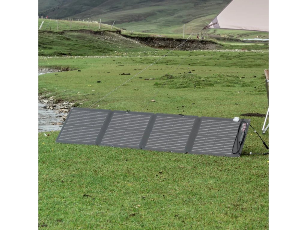 EcoFlow 110W tragbares Solarpanel Mit dem tragbaren Solarpanel EcoFlow 110W sind Sie unabhängig vom Stromnetz. Es ist leicht, faltbar und selbsttragend und liefert saubere, effiziente Solarenergie für Camping, Roadtrips und Outdoor-Abenteuer. Eigenschaften: - Tragbar und leicht: Kompakt und leicht zu transportieren, ideal für Reisen, Camping oder den Einsatz im Garten. - Hohe Umwandlungsrate: Bis zu 23 % Wirkungsgrad mit hochwertigen monokristallinen Siliziumzellen für schnelles und zuverlässiges Laden. - Selbsttragend: Mit einer Tasche, die gleichzeitig als Ständer dient – einfach den Reißverschluss öffnen und das Panel im optimalen Winkel zur Sonne aufstellen. - Langlebig und wasserdicht: IP68-zertifiziert, widerstandsfähig gegen Wasser, Staub und alle Wetterbedingungen. - Einteiliges Faltdesign: Praktisches, faltbares Panel für einfache Lagerung und Transport. Technische Daten: Nennleistung: 110 W Solarzellentyp: Monokristallines Silizium Umwandlungswirkungsgrad: Bis zu 23 % Maße im zusammengeklappten Zustand: Kompakt für einfache Aufbewahrung (genaue Maße variieren) Gewicht: Leicht, einfach zu transportieren IP-Schutzklasse: IP68 (wasserdicht und staubdicht) Lieferumfang: 1x EcoFlow 110W tragbares Solarpanel 1x Tragetasche/Ständer