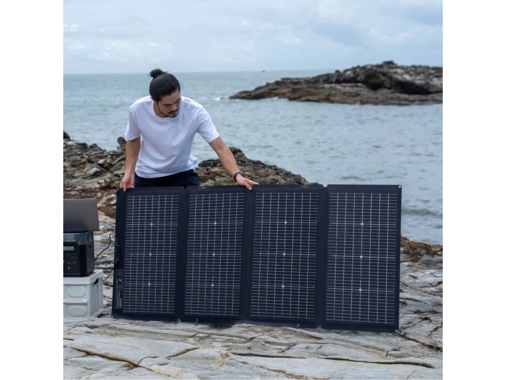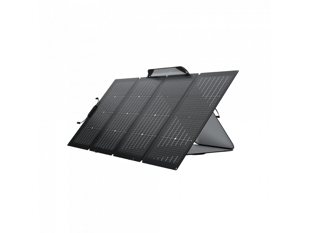 EcoFlow 220W tragbares Solarpanel Das tragbare Solarpanel EcoFlow 220W liefert effiziente, nachhaltige Solarenergie in einem kompakten und robusten Design. Sein bifaziales Zwei-in-Eins-Panel fängt zusätzliches Sonnenlicht von beiden Seiten ein und eignet sich somit perfekt für Camping, Wohnmobile und den netzunabhängigen Einsatz. Merkmale: - Bifaziales Zwei-in-Eins-Design: 220 W Vorderseite + 155 W Rückseite für bis zu 25 % mehr Energiegewinnung. - Langlebige Konstruktion aus gehärtetem Glas, die extremen Bedingungen standhält. - Hoher Wirkungsgrad von bis zu 23 % für schnelleres Laden. - Selbsttragend mit einstellbarem Winkel für optimale Sonnenlichtnutzung. - Wasserdicht und staubdicht mit Schutzklasse IP68 für den Einsatz bei jedem Wetter. - Kompakt und tragbar, mit einer Tragetasche, die gleichzeitig als Ständer dient. Technische Daten: Nennleistung: 220 W Vorderseite / 155 W Rückseite Solarzellentyp: Monokristallines Silizium Umwandlungswirkungsgrad: 22–23 % Abmessungen: 82 x 183 x 2,5 cm Leerlaufspannung (Voc): 21,8 V (Vmp 18,4 V) Kurzschlussstrom (Isc): 13 A Vorderseite / 8,8 A Rückseite Gewicht (nur Panel): 9,5 kg Lieferumfang: 1x EcoFlow 220-W-tragbares Solarpanel mit Tragetasche/Ständer