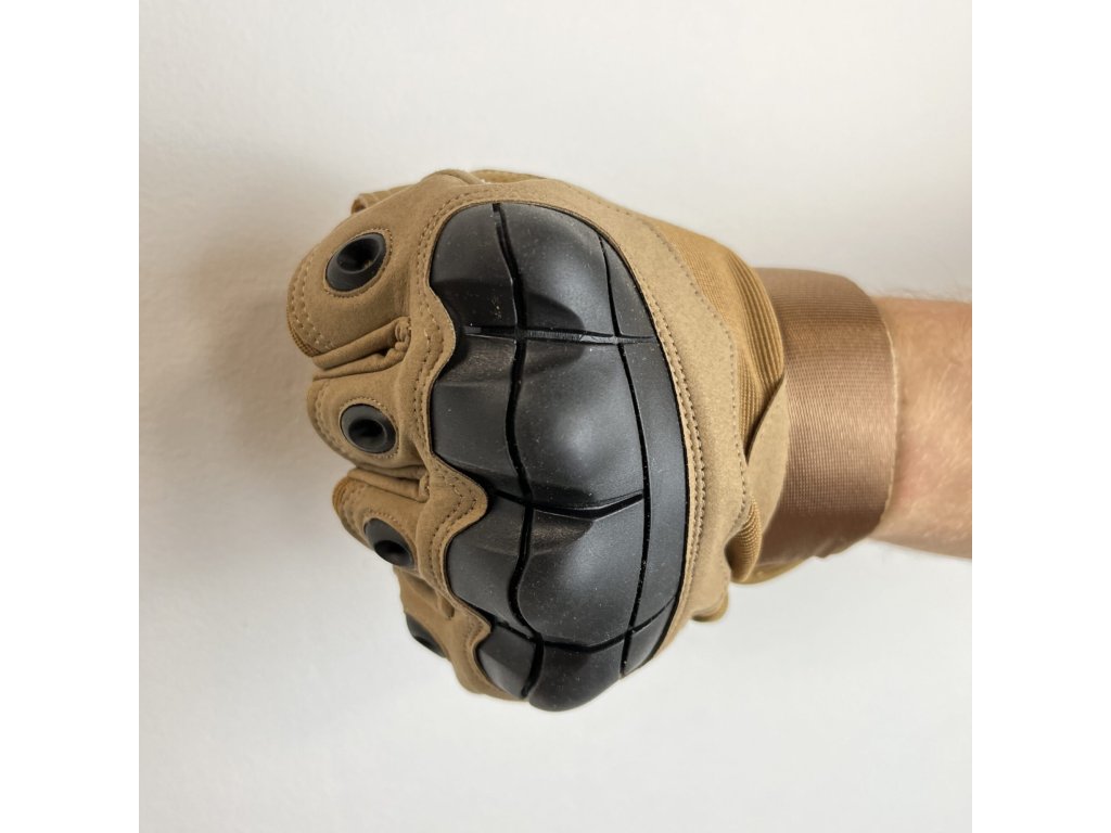Fingerlose taktische Handschuhe HF 1 Coyote Die taktischen fingerlosen Handschuhe HF 1 Olive bestehen aus hochfestem, verschleißfestem Synthetikgewebe und sind für den langfristigen Einsatz unter schwierigen Bedingungen ausgelegt. Harte Polymereinsätze auf der Rückseite schützen vor Stößen, Kratzern und Reibung. Die Passform ist mithilfe eines Verschlusses am Handgelenk verstellbar. Die Innenseite der Handfläche verfügt über eine verstärkte Beschichtung für einen stabilen Halt von Gegenständen. Die anatomische Form reduziert die Belastung der Gelenke bei aktiver Nutzung. Das Modell eignet sich für die Arbeit mit Waffen, Ausrüstung und Werkzeugen. Ideal für Tourismus und taktisches Training. Marke: Partizan Tactical Farbe: Coyote Größe: M, L, XL