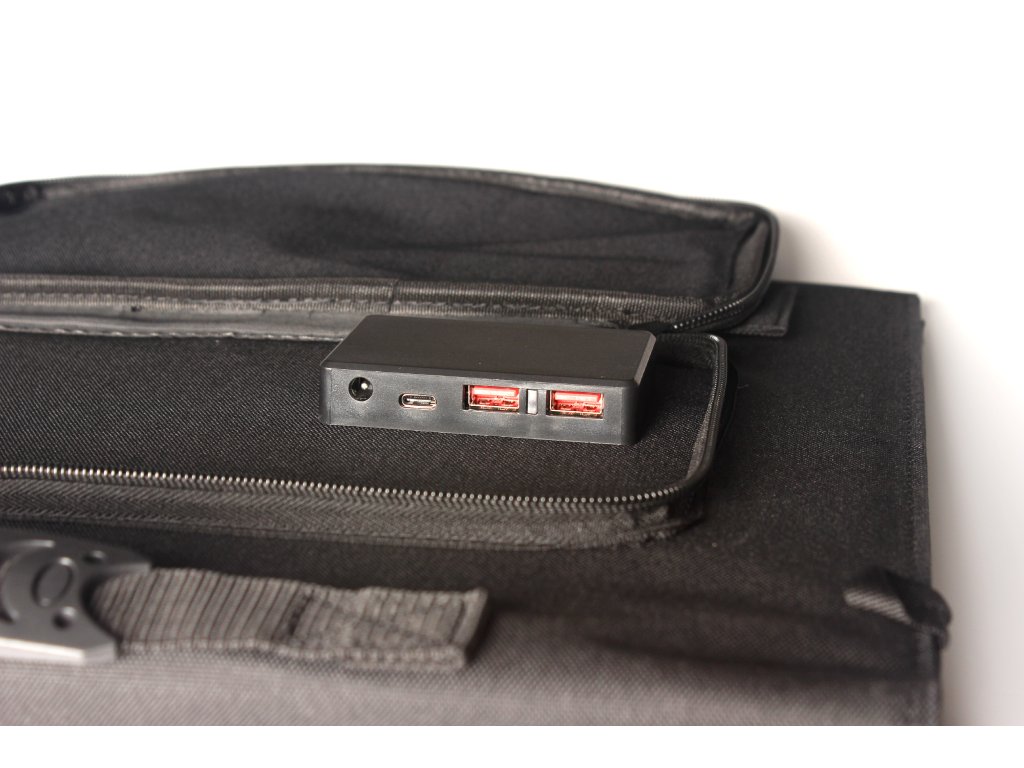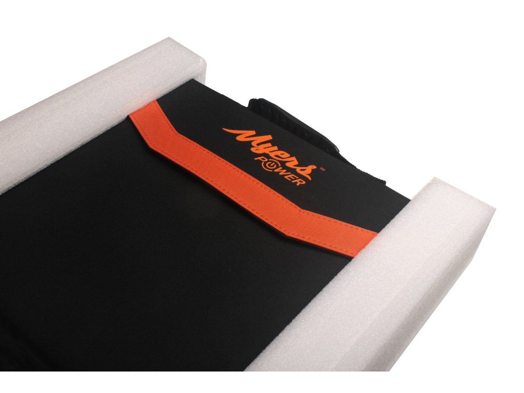 Faltbares Solarpanel Myers Power FSP-100W Das Myers Power FSP-100W ist ein kompaktes, leichtes und faltbares Solarpanel, das für den mobilen Energiebedarf entwickelt wurde. Es liefert zuverlässig Strom im Freien und unterwegs und eignet sich daher ideal für Camping, Remote-Arbeit oder Notfall-Backup-Situationen. Merkmale: - Hocheffiziente, geschuppte Monosiliziumzellen für eine hervorragende Energieausbeute. - Langlebige und wetterbeständige Konstruktion, geeignet für den Einsatz im Freien. - Leichtes, faltbares Design mit verstellbarem Ständer für optimale Sonneneinstrahlung. - Anpassbare Griff- und Stofffarben für Tragbarkeit und persönlichen Stil. - Zertifiziert nach CE-, FCC- und RoHS-Standards für Sicherheit und Umweltverträglichkeit. Technische Daten: Leistung: 100 W ± 5 % Solarzellentyp: Hocheffiziente Monosilizium-Schindeln Umwandlungswirkungsgrad: > 23 % Schutzart: IP67 (staubdicht und wasserdicht bis zu 1 Meter) Materialien: EVA-Verkapselung, Glasfaser-Rückseite, ETFE-Oberfläche Stoff: Silbergrau, wasserdicht, UV-beständig Ausgangsanschluss: MC4-Stecker Ständer: In 3 Winkeln verstellbar Abmessungen (aufgeklappt): 1550 x 390 mm Abmessungen (zusammengeklappt): 390 x 350 mm Gewicht: 2,5 kg Farben für den Tragegriff: Anpassbar (orange, blau usw.) Lieferumfang: 1x Myers Power FSP-100W faltbares Solarpanel 1x MC4-Ausgangsstecker (vorinstalliert) 1x Verstellbarer Ständer 1x Tragegriff (Farbe nach Wahl) 1x Bedienungsanleitung/Installationsanleitung