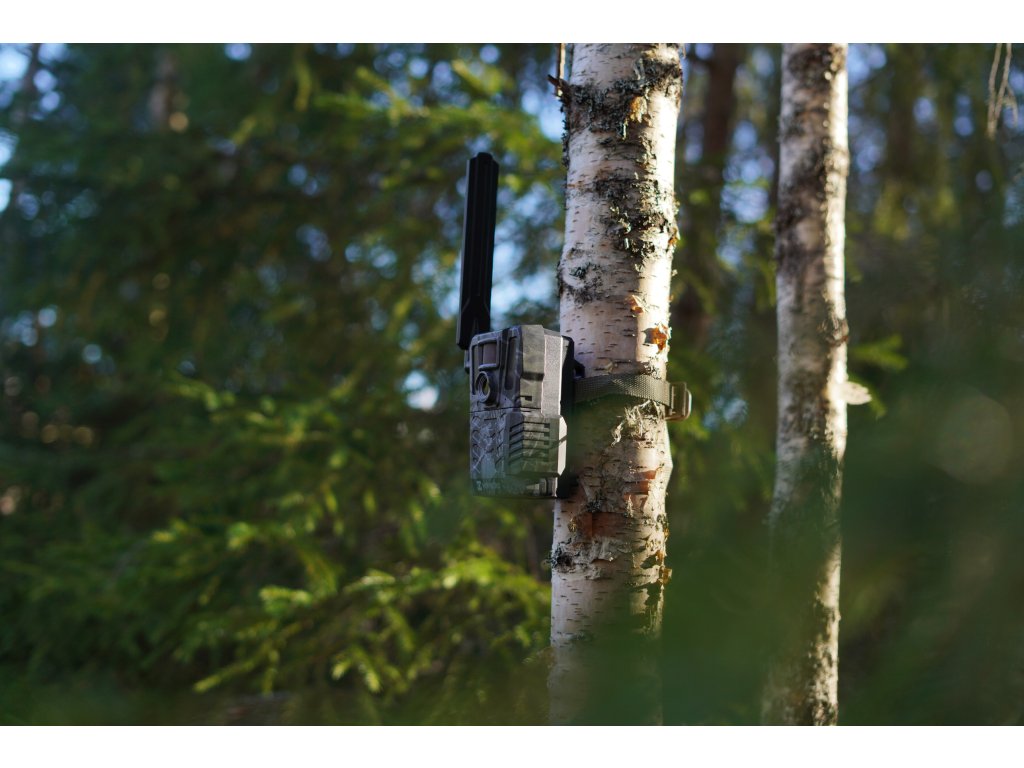 Die Batterielebensdauer der Kamerafalle beträgt bis zu fast 6 Monate. Sie verwendet 6 oder 12 Standard-AA-Batterien und kann zusätzlich zum Batteriebetrieb über ein Kabel an eine externe Stromversorgung (DC 12V / 2A) angeschlossen werden. Dank ihrer Schutzart IP66 und einem Betriebstemperaturbereich von -20 °C bis 55 °C ist sie für den ganzjährigen Betrieb ohne Wartung geeignet. Die Kamerafalle kann beispielsweise mit dem mitgelieferten Gurt an einem Baumstamm befestigt werden.