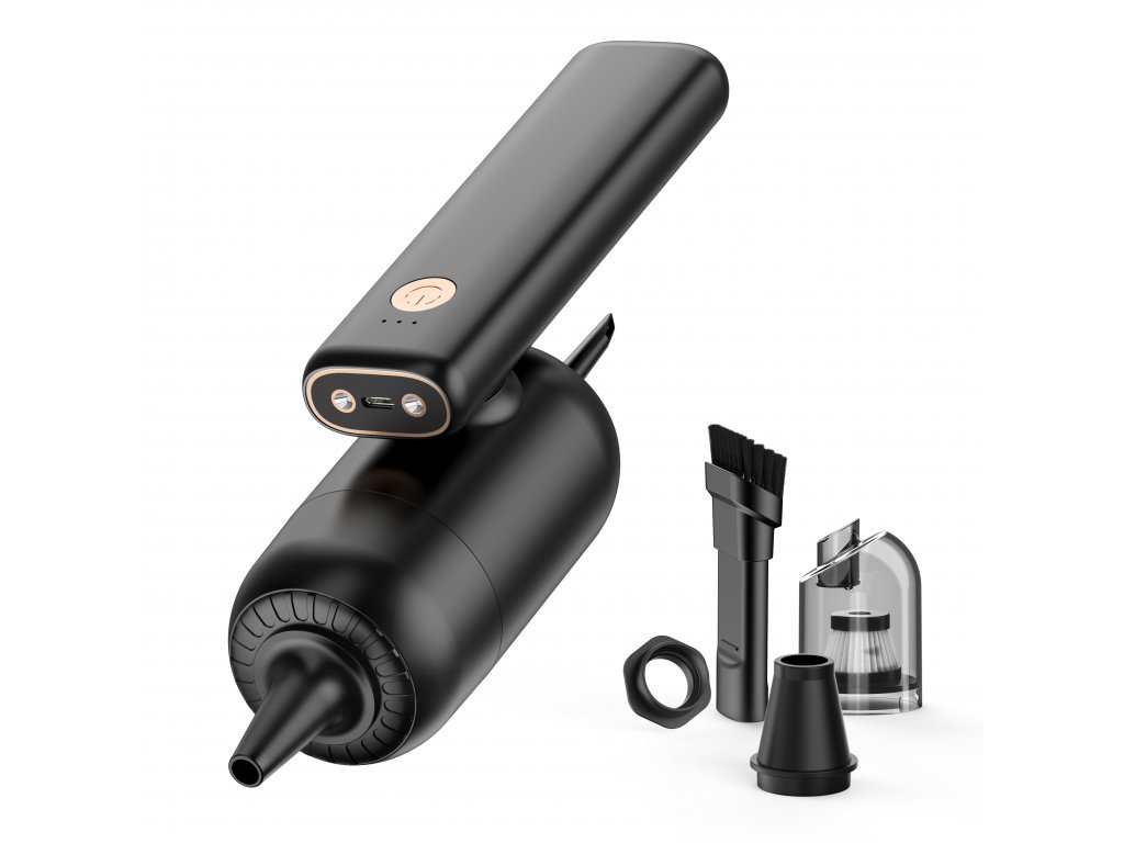 Handstaubsauger HVC-1 Black Der Handstaubsauger HVC-1 Schwarz ist ein elegantes, tragbares und multifunktionales Reinigungsgerät, das sowohl für den Einsatz im Auto als auch zu Hause entwickelt wurde. Mit seinem eleganten, ergonomischen Design und seiner starken Saugkraft entfernt er mühelos Staub, Krümel und Schmutz selbst aus den schwer zugänglichen Bereichen. Kompakt und dennoch leistungsstark, ist er Ihr Allround-Werkzeug für die tägliche Reinigung und zum Aufpumpen. Eigenschaften: - Tragbar und stilvoll: Kompaktes, leichtes Gehäuse mit raffiniertem Design – leicht zu transportieren, zu verstauen und überall einsetzbar. - Doppelte Verwendungsmöglichkeit: Perfekt für die Reinigung von Fahrzeugen und Oberflächen im Haushalt, einschließlich Tastaturen, Telefonzwischenräumen und Computerritzen. - Intelligentes und effizientes Design: Um 180° drehbares Gehäuse, sichtbarer Staubbehälter für einfache Überwachung und staubfreie Entsorgung. - Leistungsstark: Bietet starke Saugkraft für eine schnelle und effiziente Reinigung. - Multifunktionales Werkzeug: Kann auch zum Vakuumieren von Beuteln, Aufpumpen von Matratzen, Kissen, Ballons und aufblasbaren Spielzeugen verwendet werden. - LED-Beleuchtung: Die integrierte LED-Leuchte ermöglicht die Reinigung in dunklen Ecken und kann als eigenständige Taschenlampe verwendet werden. - Einfaches Aufladen: Ausgestattet mit einer universellen Typ-C-Schnittstelle für schnelles und bequemes Aufladen. Technische Daten: Modell: HVC-1 Schwarz Produktgröße: 169 x 60,35 x 87 mm Leistung: 70 W Akkukapazität: 4000 mAh Ladespannung: 5 V / 1 A Ladeanschluss: Typ C Luftvolumen: 500 l/min Drehung: 180 Beleuchtung: Integrierte LED-Leuchte Farbe: Schwarz Lieferumfang 1x Handstaubsauger HVC-1 Schwarz 1x Typ-C-Ladekabel 4x Reinigungsdüsenaufsätze (für verschiedene Anwendungen)