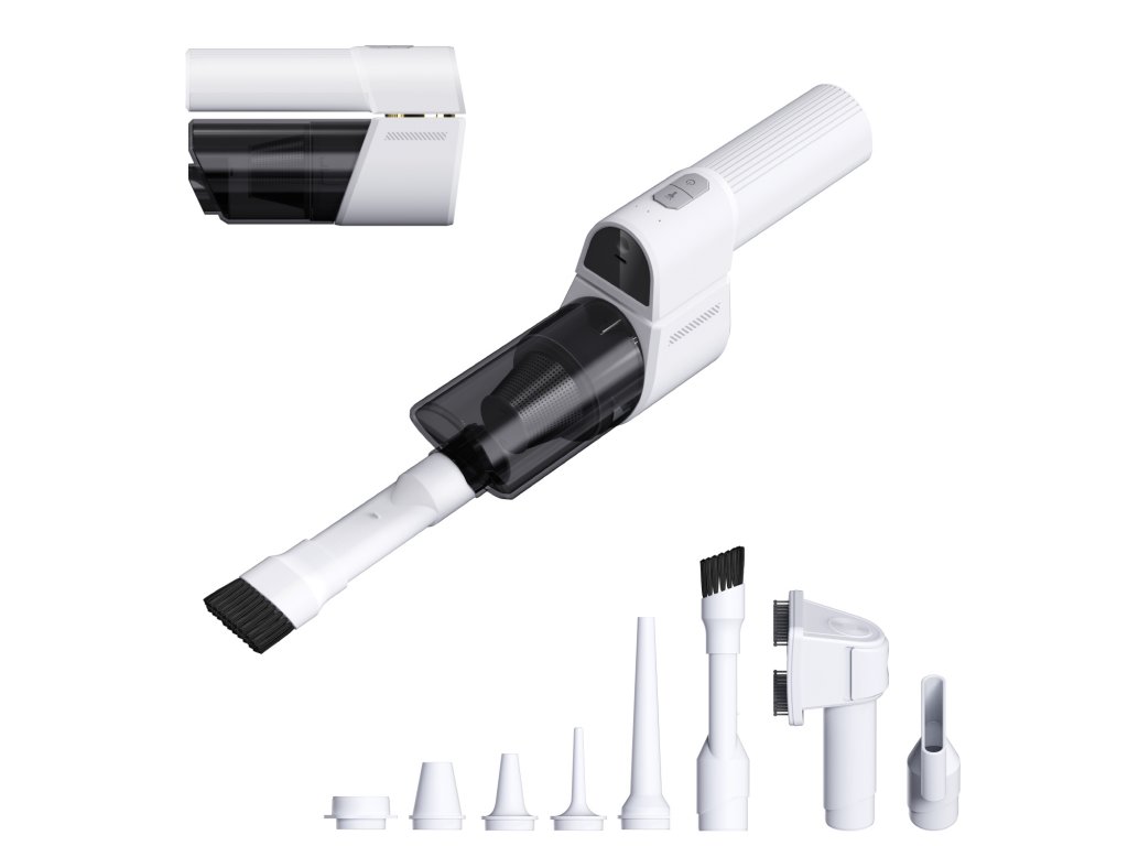 Handstaubsauger für Autos HVC-2 White Der Handstaubsauger für Autos HVC-2 White ist ein kompaktes und dennoch leistungsstarkes Reinigungsgerät, das für den mühelosen Einsatz im Auto und zu Hause entwickelt wurde. Mit seinem modernen bürstenlosen Motor, seinem intelligenten Design und seinem leichten Gehäuse bietet er eine außergewöhnliche Saugkraft und ist gleichzeitig tragbar und leicht zu verstauen. Ideal, um Staub, Krümel und Tierhaare sofort zu entfernen – damit Ihr Auto immer frisch und makellos aussieht. Eigenschaften: - Tragbar und kompakt: Mit einem Gewicht von nur 1,2 lbs passt er problemlos in das Ablagefach Ihres Autos und ist somit ideal für die Reinigung unterwegs. - Bürstenloser Motor: Der fortschrittliche Motor liefert eine Saugleistung von bis zu 15.500 Pa – 3-mal effizienter und langlebiger (bis zu 8 Jahre) als Standardmotoren. - Multifunktionale Verwendung: Perfekt für die Reinigung im Auto und zu Hause; mit LED-Licht für dunkle Ecken und als Taschenlampe verwendbar. - Professionelles Reinigungsset: Mit mehreren Düsen und Zubehörteilen für die Tiefenreinigung, die Entfernung von Tierhaaren und für enge Stellen. - Intelligentes Design: Um 180° drehbarer Körper, transparenter Staubbehälter (260 ml) und Typ-C-Schnellladefunktion für ultimativen Komfort. - Energieeffizient: Drei einstellbare Saugstufen für ein ausgewogenes Verhältnis zwischen Leistung und Akkulaufzeit. Technische Daten: Modell: HVC-2 Weiß Typ: Drehbarer tragbarer Staubsauger Material: ABS Akku: 3x2000 mAh Lithium-Akku Betriebsdauer: Stufe 1 (8000 Pa): ~34 Minuten Stufe 2 (11.500 Pa): ~21 Minuten Stufe 3 (15.500 Pa): ~14 Minuten Staubkapazität: 260 ml Ladeanschluss: Typ C 3A Gewicht: 1,2 lbs (≈545 g) Beleuchtung: Integrierte LED-Leuchte Farbe: Weiß Lieferumfang: 1x Hauptgerät 1x USB-Kabel 1x 2-in-1-Kombinationsdüse 1x verbreiterte Flachdüse 1x Tierhaarbürstenaufsatz