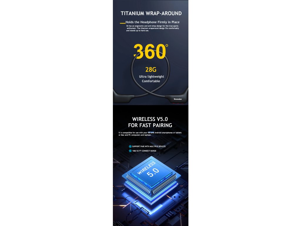 Kopfhörer Runnero WP Schwarz Moderne Laufkopfhörer mit integriertem Speicher, wasserabweisender Leistung und außergewöhnlichem Tragekomfort – entwickelt, damit Sie Ihre Musik immer dabei haben und Ihr Gerät verstaut bleibt. Eigenschaften: - Dank integriertem Speicher können Sie Musik hören, ohne Ihr Smartphone oder Ihren Mediaplayer mitnehmen zu müssen. - Die hohe Wasserfestigkeit sorgt für zuverlässige Leistung bei Regen oder intensiven Trainingseinheiten. - Das leichte und ergonomische Design erhöht den Komfort beim Laufen, Trainieren oder im Alltag. - Die Bluetooth-Konnektivität mit kompaktem Formfaktor sorgt für Bewegungsfreiheit und weniger Kabelsalat. - Langlebig und sportlich abgestimmt, um sicher, bequem und einsatzbereit zu sein, wenn Sie es sind. Technische Daten: Hauptmaterial: Silikagel Gewicht: 28,5 g Speicher: 32 GB integriert Wasserdichtigkeit: IPX8 Akku: 135 mAh Ladeeingang: 5 V / 100 mH Wiedergabezeit: bis zu 10 Stunden Bluetooth-Version: V5.3 Lademodus: Ladekabel Übertragungsreichweite: ca. 10 Meter Ladezeit: ca. 1 Stunde Farbe: Schwarz Lieferumfang: 1x Kopfhörer Runnero WP Schwarz 1x Ladekabel