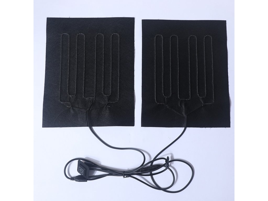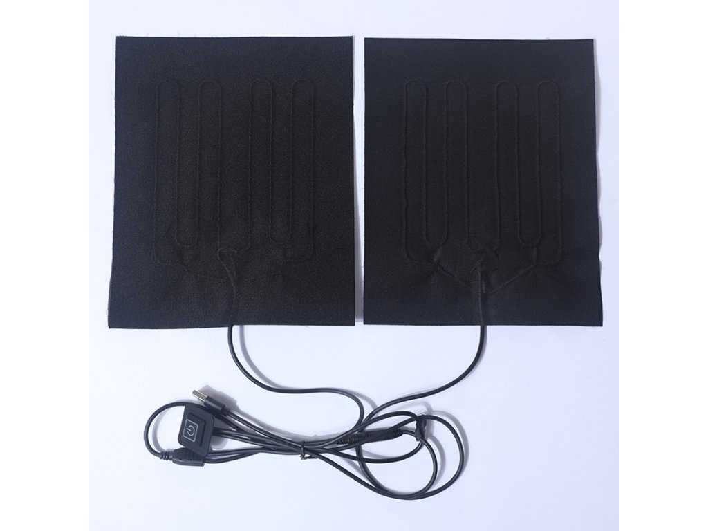Beheizbare Polster Innovatives Zubehör, das sanfte Wärme und Komfort für Wearables oder Kleidungsschichten bietet. Diese Heizpolster werden an eine USB-Stromquelle angeschlossen und sind ideal für kalte Bedingungen, da sie ein flexibles Heizelement direkt dort hinzufügen, wo Sie es benötigen. Eigenschaften: - Das weiche Heizelement aus Verbundfasern sorgt für gleichmäßige Wärme ohne aufzutragen. - USB-betrieben für die bequeme Verwendung mit Powerbanks, Laptops oder mobilen Ladegeräten. - Manuelle Schaltersteuerung mit intuitiven farbcodierten Einstellungen für niedrige, mittlere und hohe Wärme. - Durch das leichte und kompakte Design lassen sich die Pads leicht in Kleidung oder Schichtsysteme integrieren. - Ideal für mehr Komfort in kühlen Umgebungen, egal ob im Freien, unterwegs oder bei der Arbeit. Technische Daten: Material: Verbundfaser. Stromversorgung: USB (DC) Betriebsspannung: 5 V / 2 A Leistungsaufnahme: 10 W Größe: 200–250 mm (Länge) Einstellbarer Temperaturbereich: 45 °C bis 65 °C Wärmeanzeige/LED-Farbanzeige: Rot = hoch, Blau = mittel, Grün = niedrig Gewicht: ca. 93 g (pro Paar) Steuerung: Manuelle Schaltersteuerung Lieferumfang: 2x Heizkissen 1x USB-Kabel