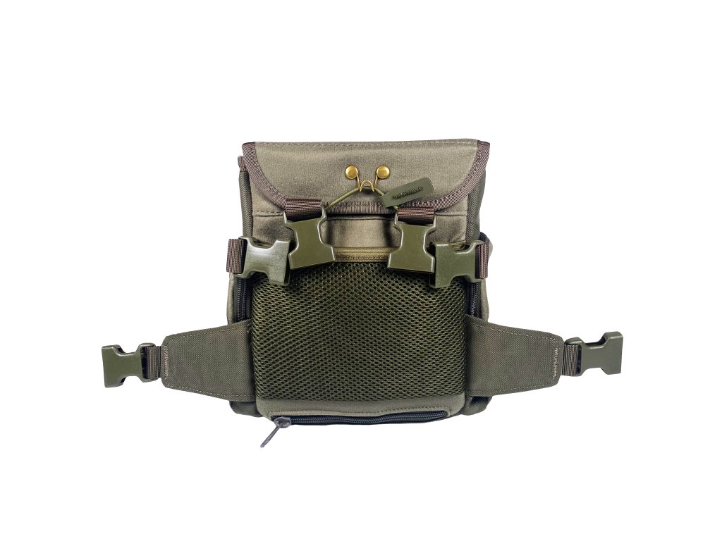 Die Tasche verfügt über eine integrierte Regenhülle, die in die Tasche an der unteren Außenseite der Tasche integriert ist, Taschen für Batterien und Zubehör sowie Gurte für eine sichere und stabile Befestigung.