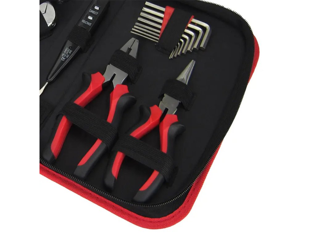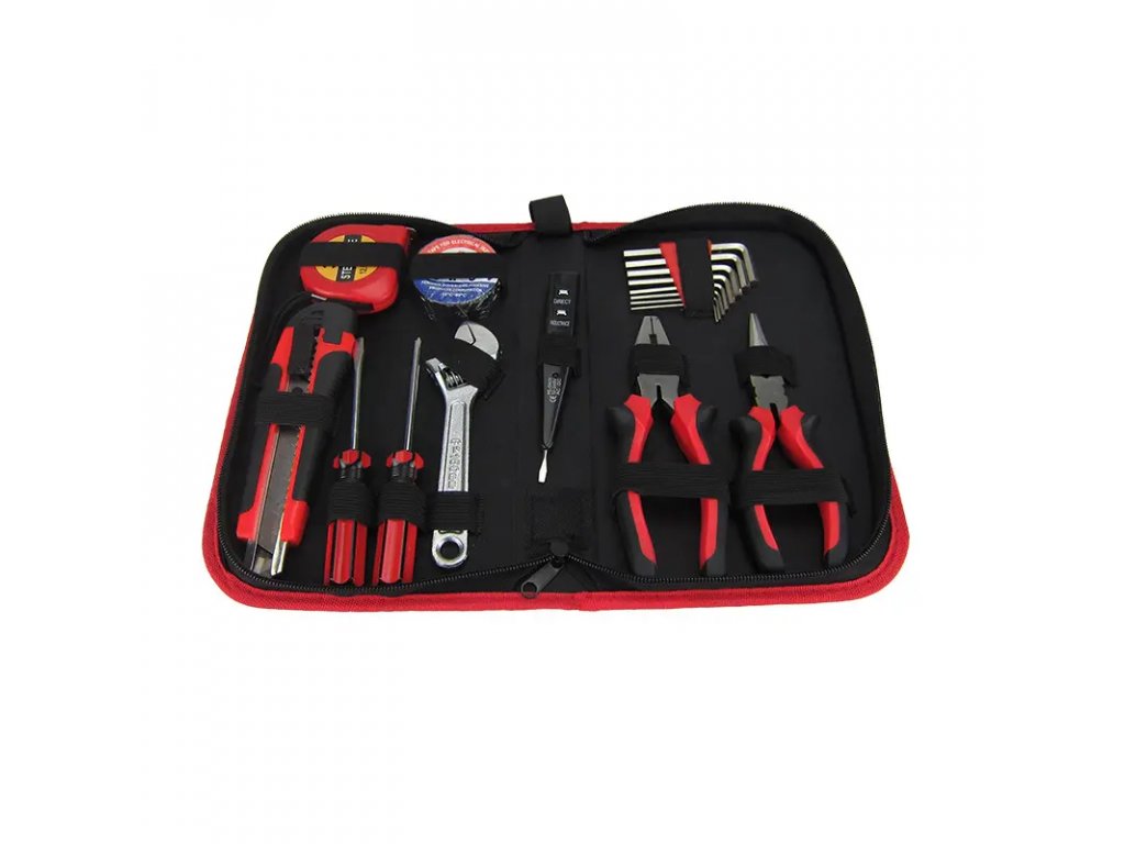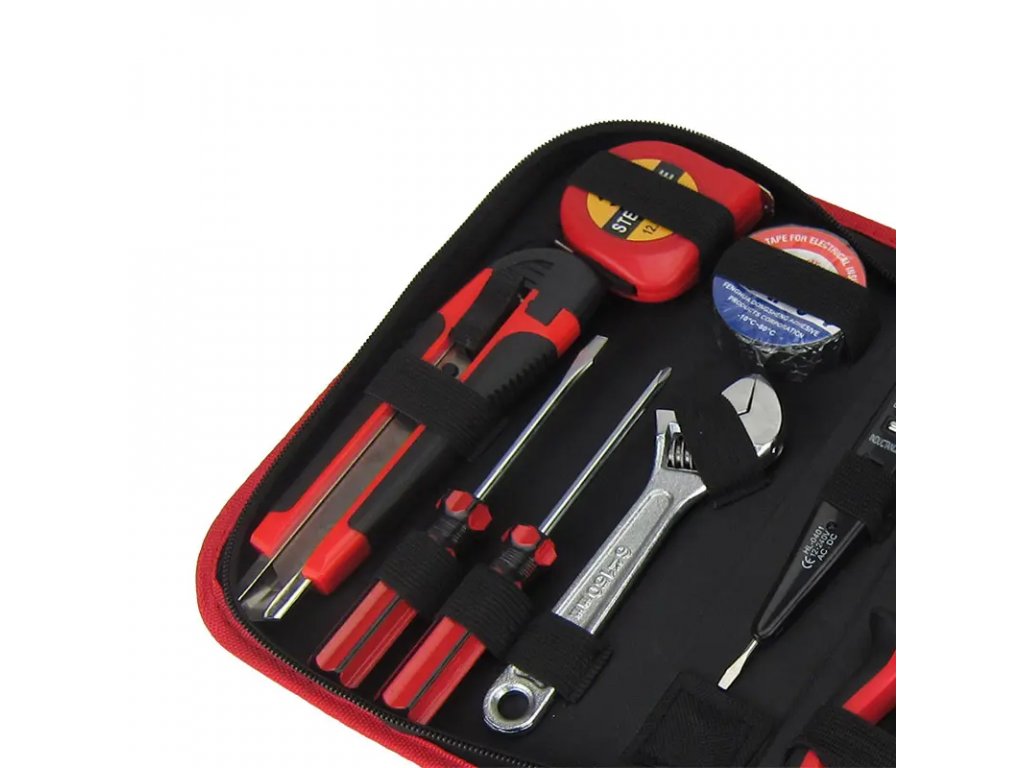 Heimwerker-Set (Hkit H-110) Das Heimwerker-Set (Hkit H-110) ist ein praktisches und vielseitiges Set mit wichtigen Werkzeugen für alltägliche Reparaturen im Haushalt, Heimwerkerprojekte und Wartungsarbeiten. Kompakt, langlebig und übersichtlich in einer praktischen Stofftasche verstaut, eignet sich dieses Set perfekt für schnelle Reparaturen im Haus, in der Garage oder am Arbeitsplatz. Eigenschaften: - Komplettset für den Heimgebrauch: Enthält die am häufigsten benötigten Werkzeuge für Montage, Reparatur und Wartung. - Langlebige Konstruktion: Alle Werkzeuge sind aus hochwertigem Kohlenstoffstahl gefertigt und zeichnen sich durch hohe Festigkeit und lange Lebensdauer aus. - Kompakt und tragbar: Wird in einer weichen Stofftasche geliefert, die eine einfache Aufbewahrung und den Transport ermöglicht. - Ergonomisches Design: Komfortable Griffe sorgen für einen sicheren Halt bei längerem Gebrauch. - Vielseitig einsetzbar: Ideal für den Haushalt, die Kfz-Werkstatt oder Heimwerker – perfekt für Anfänger und Profis gleichermaßen. Technische Daten: Modell: Hkit H-110 Hauptmaterial: Kohlenstoffstahl Material der Tasche: Stoffbeutel Größe: 255 x 158 x 50 mm Gewicht: 1 kg Lieferumfang: 1x Schlitzschraubendreher (5 × 75 mm) 1x Kreuzschlitzschraubendreher (5 × 75 mm) 1x Universalmesser 1x Elektrosonde 1x Isolierband 1x Maßband (3 m) 1x Verstellbarer Schraubenschlüssel (6") 1x Kombizange (6„) 1x Spitzzange (6“) 8x Sechskantschlüssel (1,5, 2, 2,5, 3, 4, 5, 5,5, 6 mm) 1x Stoffaufbewahrungstasche