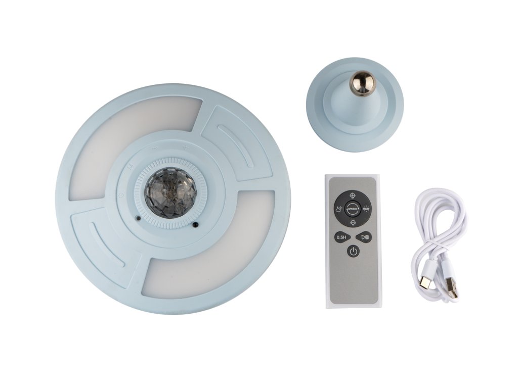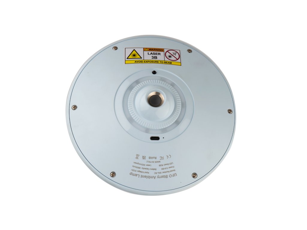 Eine kompakte und stilvolle Projektorlampe, die in jedem Raum einen beruhigenden Sternenhimmel-Effekt erzeugt. Das Gerät kombiniert grüne Laserprojektion mit farbenfroher RGB-Umgebungsbeleuchtung und lässt sich bequem per Fernbedienung steuern.