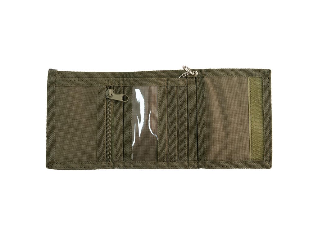 Mil-Tec Geldbörse mit Kette Olive Die Mil-Tec Geldbörse mit Kette ist eine strapazierfähige und praktische Geldbörse für den täglichen Gebrauch und Outdoor-Aktivitäten. Sie kombiniert klassischen Camouflage-Stil mit sicherer Funktionalität und bietet zuverlässigen Schutz für Ihre wichtigsten Utensilien. Eigenschaften: - Robuste Polyesterkonstruktion mit PVC-Beschichtung für Wasserfestigkeit. - Integrierte Metallkette mit Karabinerhaken sorgt für sichere Befestigung am Gürtel oder an der Ausrüstung. - Mehrere Fächer für die übersichtliche Aufbewahrung von Bargeld, Münzen und Karten. - Klettverschluss für schnelles und sicheres Schließen. - Kompaktes Design, das leicht in Taschen oder Beutel passt. Spezifikationen: Material: 100 % Polyester, mit Polyvinylchlorid beschichtet Kette: Metall Abmessungen: 9 x 13 cm Farbe: Oliv Verschluss: Klettverschluss Lieferumfang: 1x Mil-Tec Geldbörse mit Kette Oliv