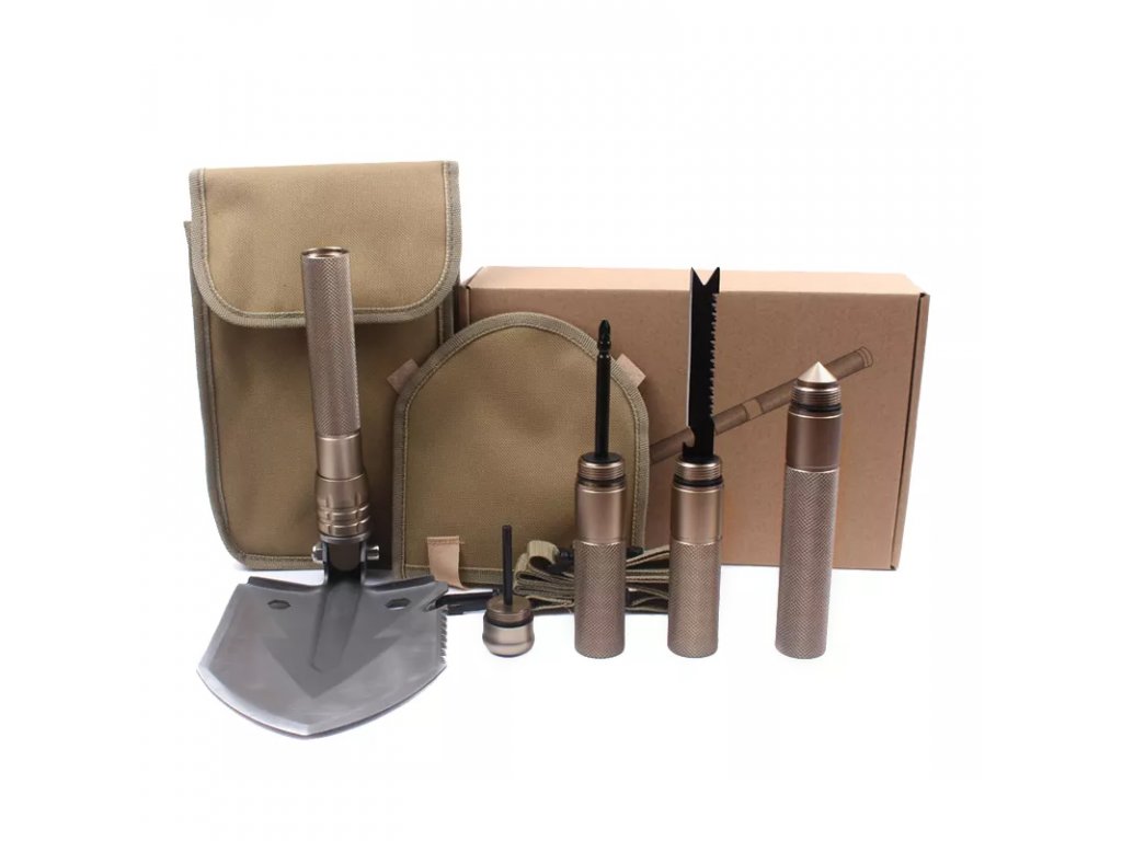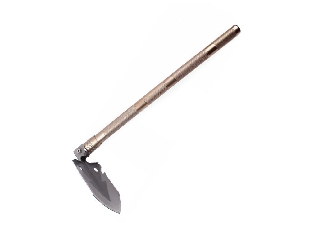 Multifunktionale Klappschaufel Partizan Tactical TSK-2 Gold Die Partizan Tactical TSK-2 Gold ist eine multifunktionale Klappschaufel, die für Outdoor-Enthusiasten, Survivalisten und den taktischen Einsatz entwickelt wurde. Sie ist kompakt und dennoch langlebig und vereint mehrere Werkzeuge in einer soliden Konstruktion – damit ist sie ein zuverlässiger Begleiter beim Camping, Wandern oder in Notfällen. Eigenschaften: - Vielseitiges Design – fungiert als Schaufel, Hacke, Säge, Messer und mehr - Modulares Griffsystem ermöglicht verschiedene Segmentkombinationen für unterschiedliche Aufgaben - Robuster Kopf aus 2Cr13-Edelstahl und Griff aus Aluminiumlegierung sorgen für Festigkeit und Korrosionsbeständigkeit - Kompaktes Klappdesign für bequemen Transport und Lagerung - Enthält mehrere integrierte Überlebenswerkzeuge: Seilschneider, Harpune, Hammer, Feuerstein und Kompass - Ideal für militärische, Outdoor- und Rettungsanwendungen Spezifikationen: Material: 2Cr13-Edelstahl + Aluminium Größe des Schaufelkopfes: 13 x 16,5 cm Gesamtlänge: 74 cm Gewicht: 1050 g Typ: Klappbare multifunktionale taktische Schaufel Farbe: Gold Lieferumfang: 1x Messer-/Sägemodul 1x Seilschneider 1x Harpune 1x Hammer 1x Feuerstein 1x Kompass 1x Tragetasche