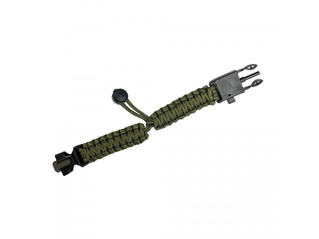 Paracord-Armband Partizan Tactical Olive Multifunktionales Paracord-Armband – stilvolles und praktisches Outdoor-Accessoire mit integriertem Kompass, Fastex-Schnalle und Messer/Feuerstein. In Notfällen kann das Armband aufgerollt werden, um 3,2 m starkes Paracord für den Bau von Unterkünften, die Reparatur von Ausrüstung oder die Sicherung von Geräten bereitzustellen. Eigenschaften: - Stilvolles und strapazierfähiges Armband für den Alltag oder Outdoor-Abenteuer - Integrierter Kompass für grundlegende Navigation - Integrierte Fastex-Schnalle für sicheren Halt - Enthält ein kleines Messer/Feuerstein-Werkzeug für Überlebenssituationen - Verstellbare Handgelenkgröße für bequemen Sitz Für Überlebenszwecke und als Accessoire gedacht. Seien Sie vorsichtig beim Umgang mit Messer/Feuerstein; nicht als Kletter- oder Lastentragevorrichtung gedacht. Technische Daten: Länge des Paracords im entrollten Zustand: 3,2 m Verstellbare Länge des Armbands: 230–285 mm Breite: 33 mm Material: Kunststoff + Paracord Farbe: Olivgrün Lieferumfang: 1x Paracord-Überlebensarmband mit Kompass, Fastex-Schnalle und Messer/Feuersteinwerkzeug