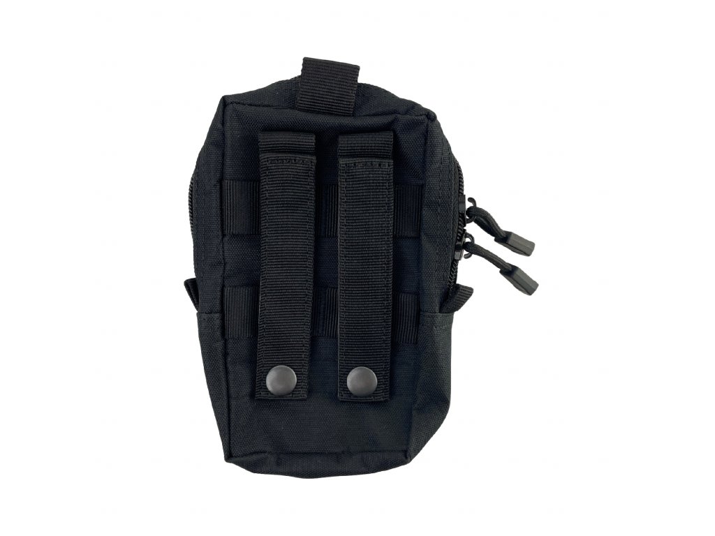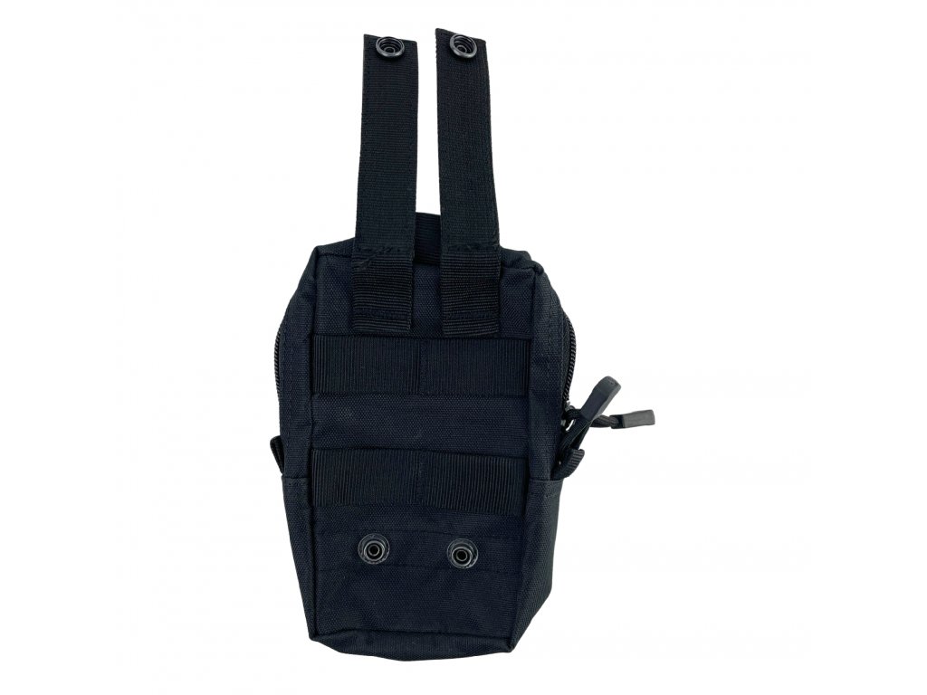 Die Vorderseite der Tasche ist mit Klettverschluss versehen, die Rückseite mit Elementen des MOLLE-Systems.