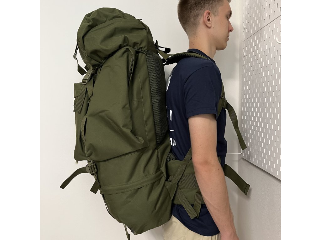 Premium-Taktikrucksack 100 l (BPT10-100) Olive Ein großer taktischer Rucksack, in dem Sie alles verstauen können, was Sie für eine Woche oder länger benötigen. Sie können einen Schlafsack, Waffen und viele andere nützliche Dinge daran befestigen. Er verfügt über weiche, ergonomische Gurte und ein bequemes seitliches Stützsystem. Eine in das Hauptfach integrierte feuchtigkeitsbeständige Abdeckung hilft Ihnen, schwierige Wetterbedingungen zu bewältigen. Außerdem verfügt er über einen stabilen Aluminiumrahmen, der ihm seine Form verleiht und das Tragen schwerer Lasten ermöglicht. Dies ist ein echter taktischer Rucksack, der für jede Herausforderung gerüstet ist! Material: 600D Oxford Größe: 80 x 32 x 30 cm Gewicht: 2800 g Lieferumfang: 1x Premium-Taktikrucksack 100 L (BPT10-100) Olive
