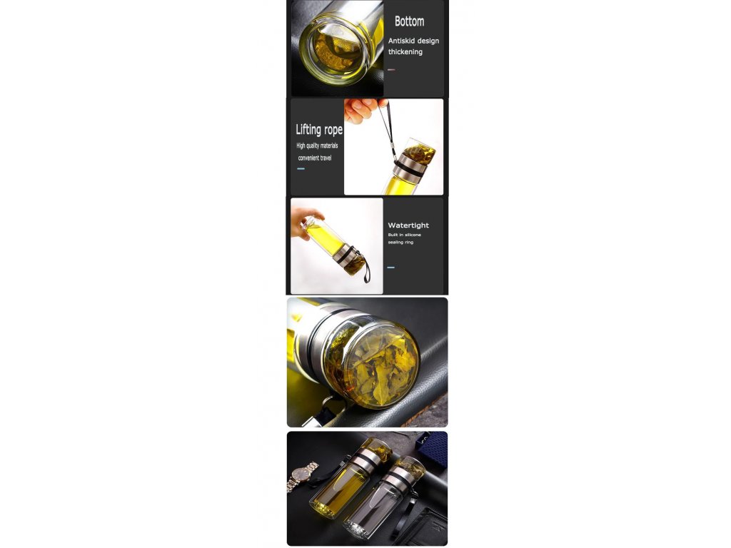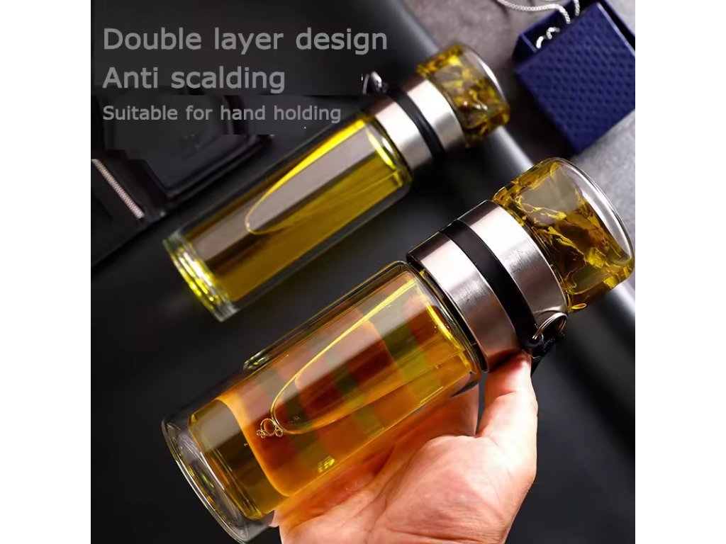 Teethermoskanne Silber Glas 250 Die mit einer digitalen Temperaturanzeige ausgestattete Teethermoskanne ist ein praktischer und funktionaler Behälter, der speziell für Tee-Liebhaber entwickelt wurde, die viel unterwegs sind. Technische Daten: Größe: 22 x 6,5 cm Fassungsvermögen: 250 ml Material des Bechers: Hochborosilikatglas Kunststoffteile: lebensmittelechtes PP Gewicht: 0,5 kg Farbe: Silber Funktion: Temperaturanzeige Trennung von Tee und Wasser Lieferumfang: 1x Tee-Thermoskanne Silber Glas 250