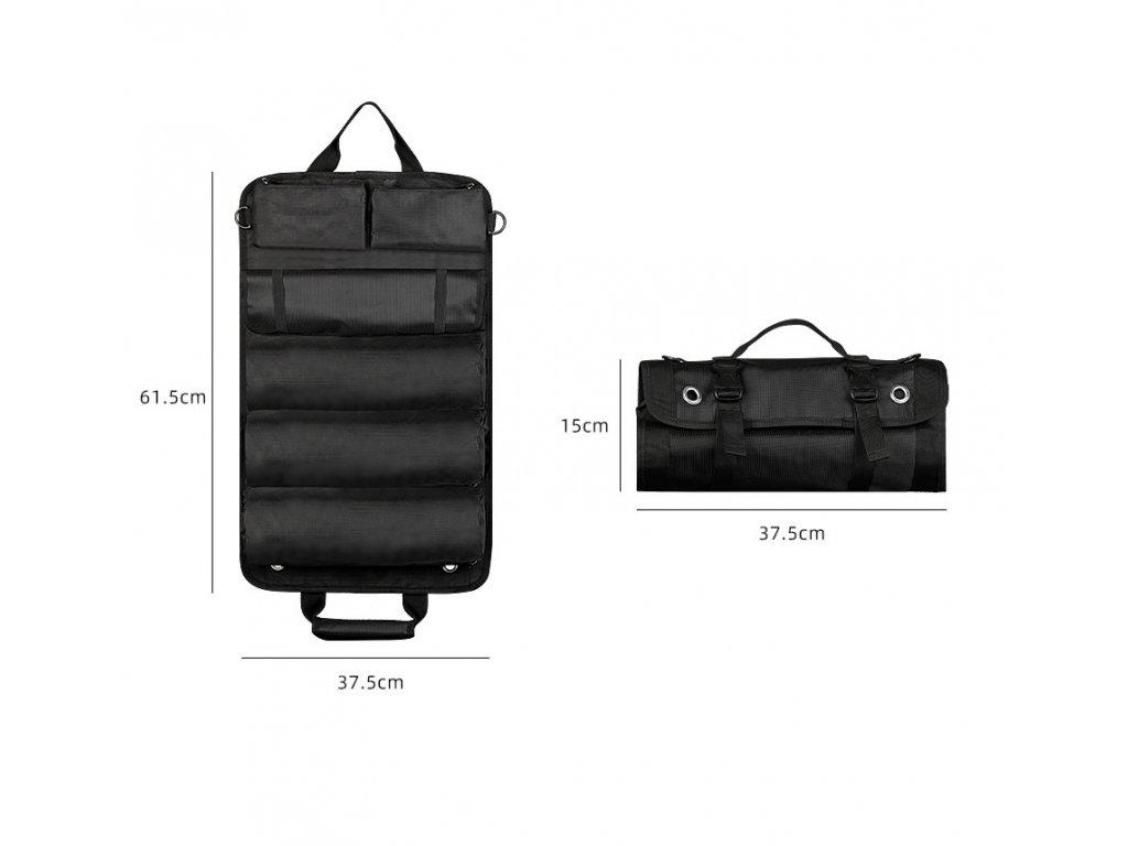 Werkzeugtasche (TBF-60 Schwarz) Faltbare, tragbare Werkzeugtasche. Ideal zur Aufbewahrung von Schlüsseln oder Handwerkzeugen, insbesondere Elektrikerwerkzeugen. Tragbares Design, leicht zu transportieren; aus hochwertigem und strapazierfähigem Stoff gefertigt. Integrierte Befestigungsriemen, um die Werkzeuge beim Aufrollen sicher zu verstauen. Einfach zu transportieren und aufzuhängen: Bewahren Sie Ihre Werkzeuge und Zubehörteile übersichtlich auf und transportieren Sie sie in einem faltbaren, aufrollbaren Organizer. Hängen Sie den Werkzeugtaschen-Organizer in Ihrer Garage oder Werkstatt auf. Dieser aufrollbare Werkzeug-Organizer ist ein Muss für jeden Handwerker, Mechaniker, Schreiner, Klempner, Elektriker oder Heimwerker. Die aufrollbare Tasche für Schraubenschlüssel kann für Auto-/Motorradwerkzeuge, Reparaturen oder Notfälle verwendet werden. Material: Oxford Größe im aufgeklappten Zustand: 61,5 x 37,5 cm Größe im zusammengeklappten Zustand: 37,5 x 15 cm Gewicht: 1 kg Farbe: Schwarz Lieferumfang: 1x Werkzeugtasche (TBF-60 Schwarz)