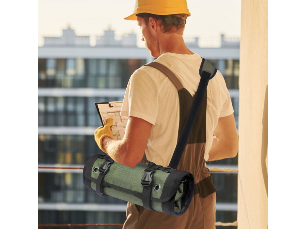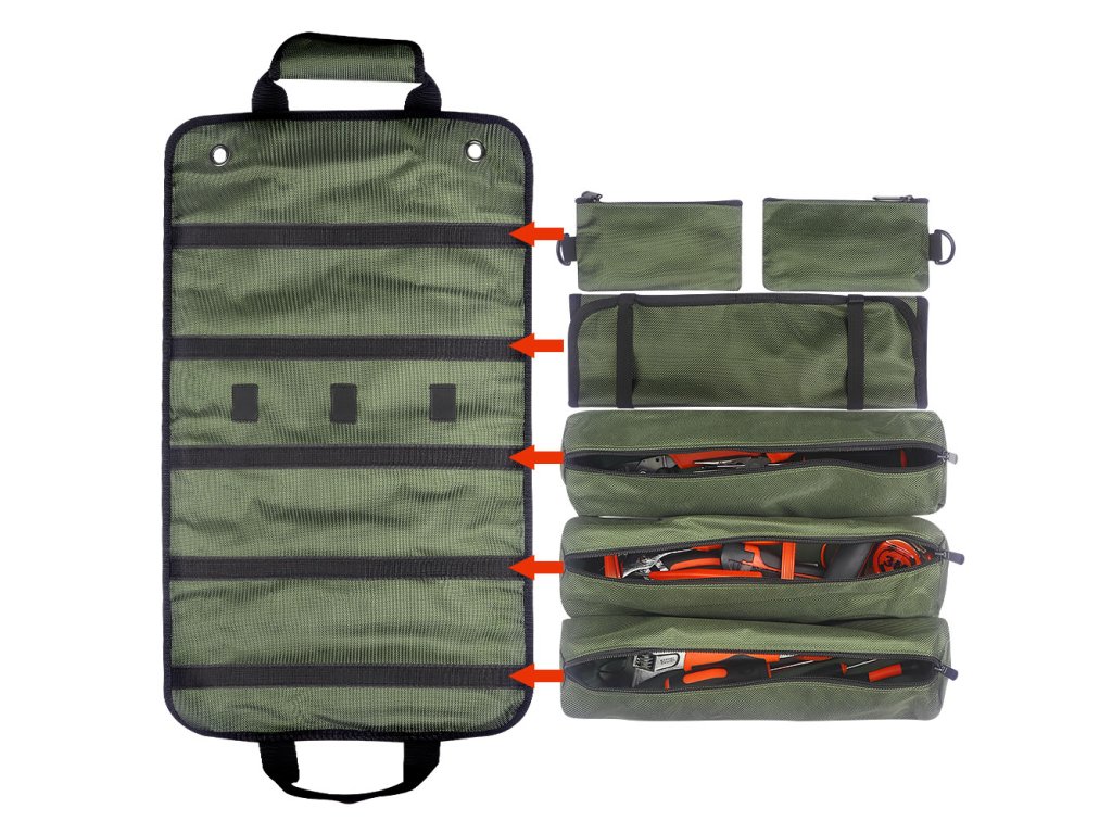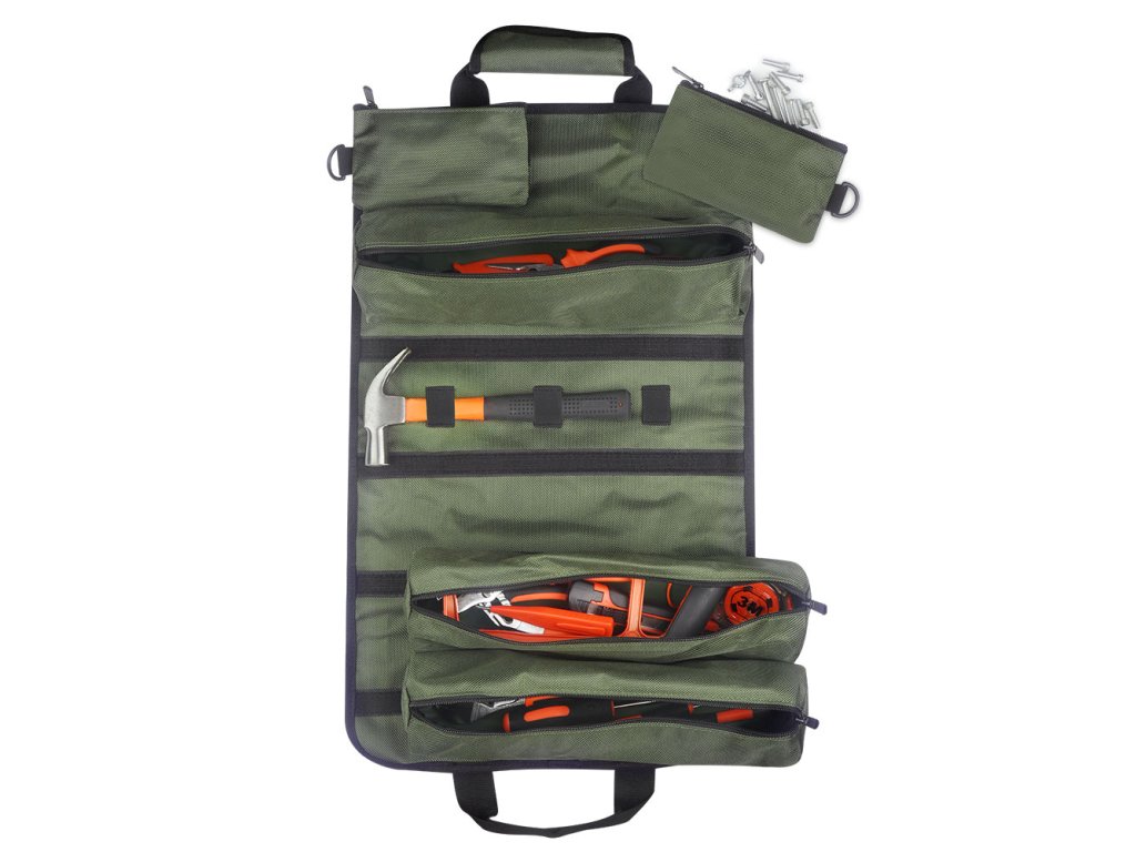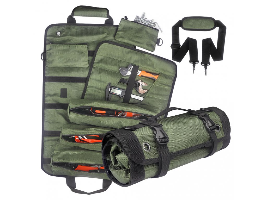 Werkzeugtasche (TBF-60 Olive) Faltbare, tragbare Werkzeugtasche. Ideal zur Aufbewahrung von Schlüsseln oder Handwerkzeugen, insbesondere Elektrikerwerkzeugen. Tragbares Design, leicht zu transportieren; aus hochwertigem und strapazierfähigem Stoff. Integrierte Befestigungsgurte, um die Werkzeuge beim Aufrollen sicher zu verstauen. Einfach zu transportieren und aufzuhängen: Bewahren Sie Ihre Werkzeuge und Zubehörteile übersichtlich auf und transportieren Sie sie in einem faltbaren, aufrollbaren Organizer. Hängen Sie den Werkzeugtaschen-Organizer in Ihrer Garage oder Werkstatt auf. Dieser aufrollbare Werkzeug-Organizer ist ein Muss für jeden Handwerker, Mechaniker, Schreiner, Klempner, Elektriker oder Heimwerker. Die aufrollbare Tasche für Schraubenschlüssel kann für Auto-/Motorradwerkzeuge, Reparaturen oder Notfälle verwendet werden. Material: Oxford Größe im aufgeklappten Zustand: 61,5 x 37,5 cm Größe im zusammengeklappten Zustand: 37,5 x 15 cm Gewicht: 1 kg Farbe: Oliv Lieferumfang: 1x Werkzeugtasche (TBF-60 Oliv)