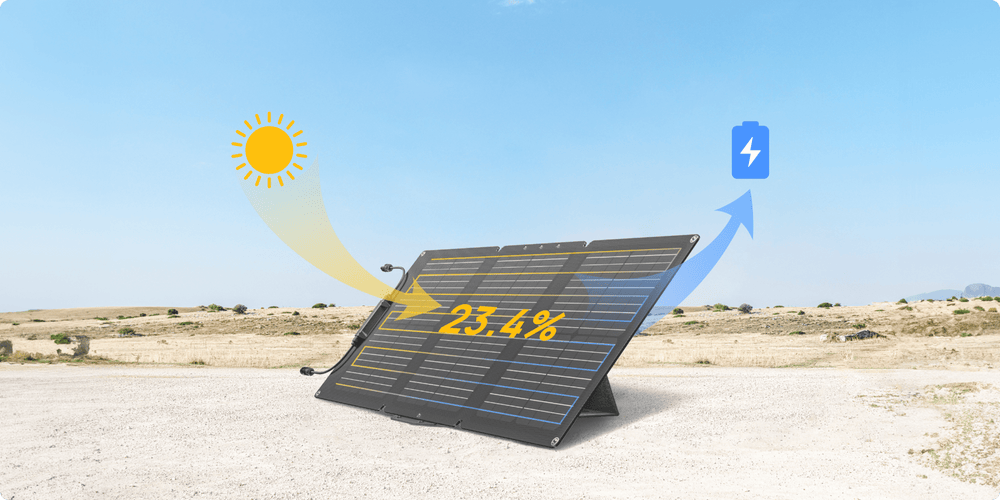 With a high 23.4% conversion rate, the RIVER 2 portable power station can be fully charged in just 5 hours during peak sunlight hours. This means you can charge RIVER 2 anywhere and keep your essential appliances powered up.
