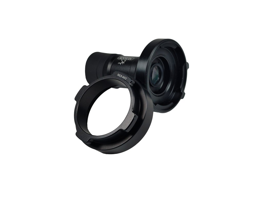 Rusan eyecups for use with attachments as a monocular are compatible with the Rusan MAR mount system. It is very easy to use – your MAR mount includes an MCR reduction ring, from which you simply remove the quick-release mount and replace it with the eyecup. In no time at all, you can turn your attachment into a monocular with 2.5x magnification!
