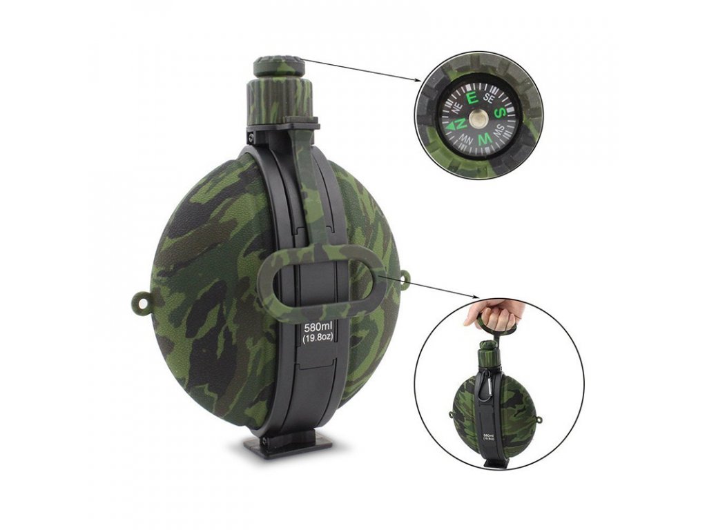 Сanteen Compact KT-580 Camo Green Сanteen Compact KT-580 – velmi praktická láhev, která se hodí doma, při cvičení, na procházkách i na cestách. Víčko je vzduchotěsné, takže tekutina nevyteče ani při převrácení. Láhev je velmi prostorná a kompaktní, takže se snadno vejde do tašky nebo batohu. Je ideální pro sportovce a turisty a je velmi odolná. Láhev je vyrobena z potravinářského silikonu, který neuvolňuje škodlivé látky ani pachy. Je lehká, kompaktní, robustní a odolná proti nárazům. Vlastnosti: - Skládací, lehká a kompaktní - Ideální na cestování - Kompas na víčku - Lze použít pro horké nápoje Specifikace: Materiál: silikon + hliníkový vnitřní kryt + PP Objem: 580 ml Hmotnost: 202 g Rozměry: 48 x 67 x 209 mm Barva: kamuflážní zelená Balení obsahuje: 1x kompaktní láhev KT-580 kamuflážní zelená