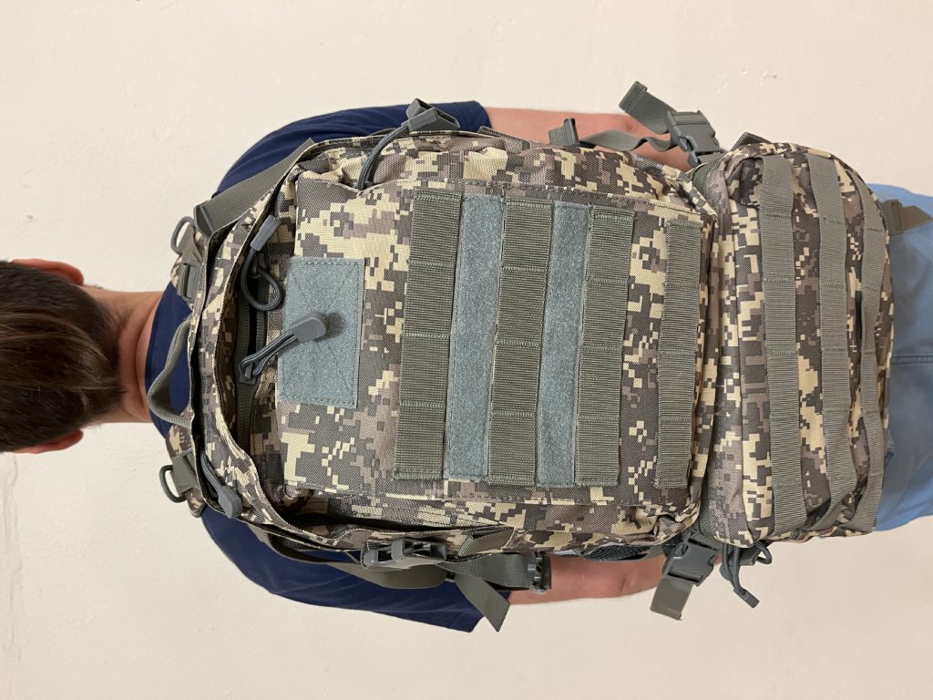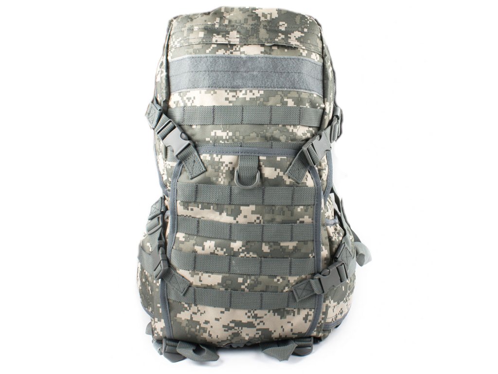Taktický batoh 40 l (BPT5-40) ACU Pixel Tento klasický model má bederní pás, boční popruhy, pohodlné ramenní popruhy a anatomicky tvarované vložky na záda. Uvnitř je speciální měkká kapsa na notebook nebo tablet. Na vnější straně má tento batoh systém Molle pro připevnění dalšího vybavení. Materiál: 600D Oxford Rozměry: 46x28x25 cm Hmotnost: 1 350 g Balení obsahuje: 1 x taktický batoh 40 l (BPT5-40) ACU Pixel