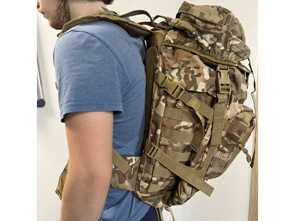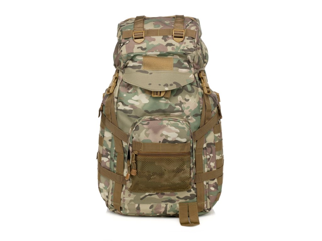 Taktický batoh 60 L (BPT1-60) Multicam Prostorný taktický batoh s velkou hlavní komorou ve formě tašky, která se uzavírá stahovací šňůrkou. K dispozici je přihrádka na notebook a další kapsy. Na vnější straně má také mnoho malých kapes na zip a kruhový systém Molle pro připevnění dalších předmětů. Polstrované ramenní a boční popruhy jsou snadno nastavitelné. Materiál: 600D Oxford Rozměry: 50x38x27 cm Hmotnost: 1 350 g Balení obsahuje: 1 x taktický batoh 60 l (BPT1-60) Multicam